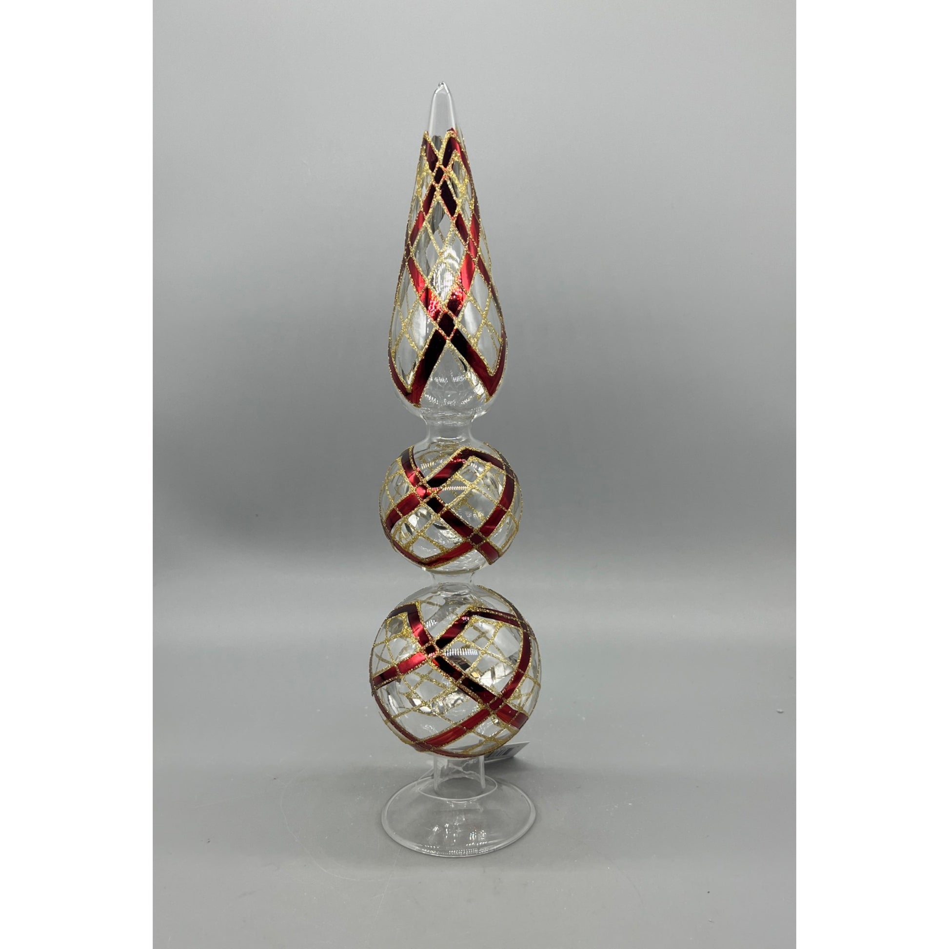 Elegant glass finial with burgundy and gold accents, adding sophistication to decor. Ideal for display on mantels or as part of festive arrangements.