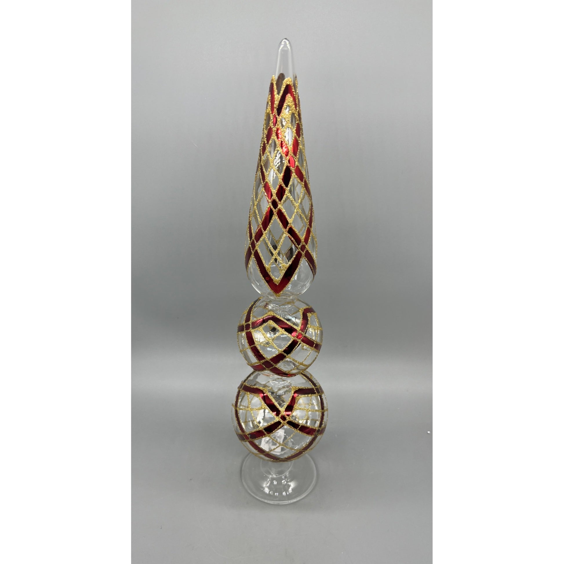 Elevate holiday décor with this elegant 17-inch clear glass finial featuring a burgundy and gold diamond pattern. Ideal for mantle or tabletop display.
