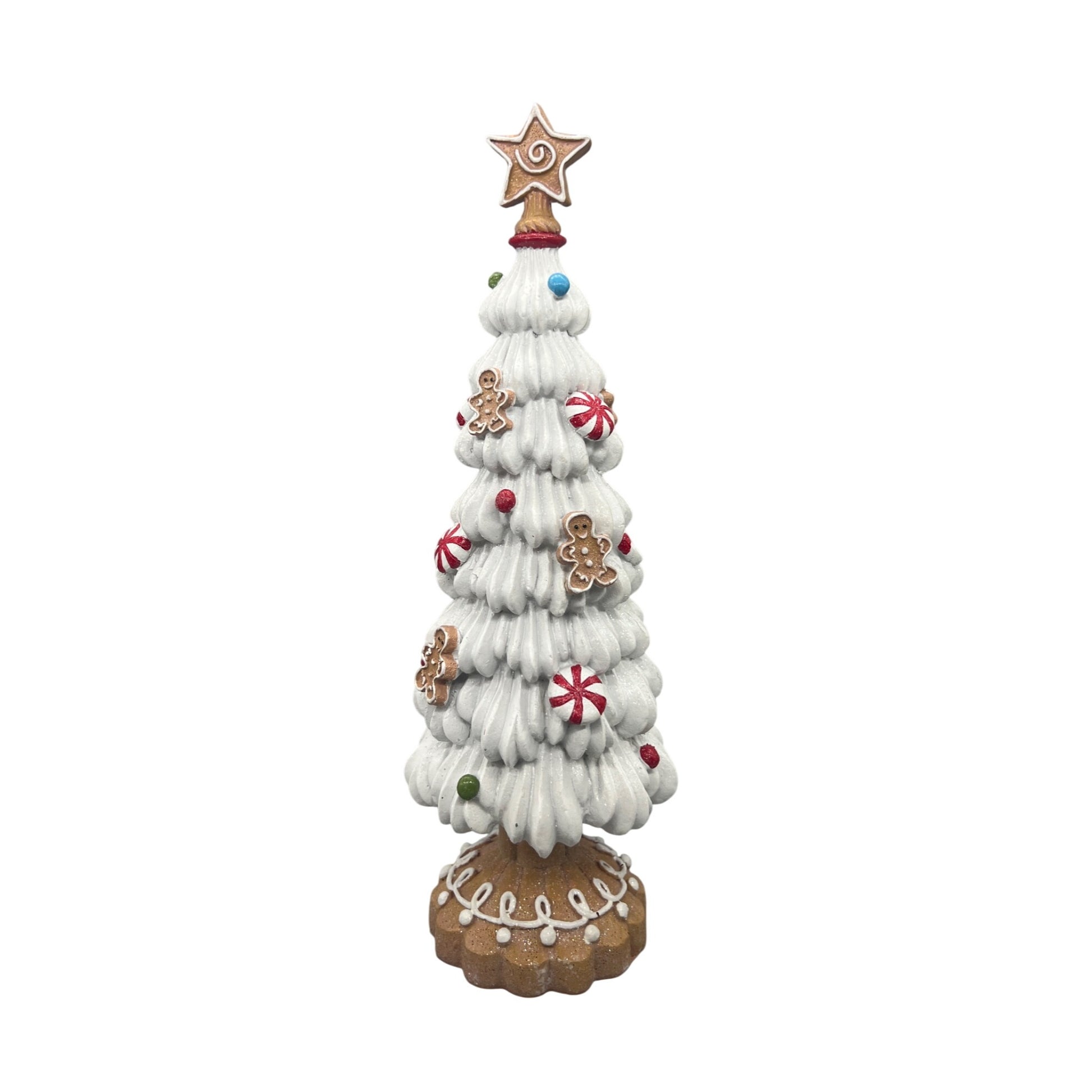 Gingerbread-Inspired White Christmas Tree Decor With Star Topper & Candy Accents 12”