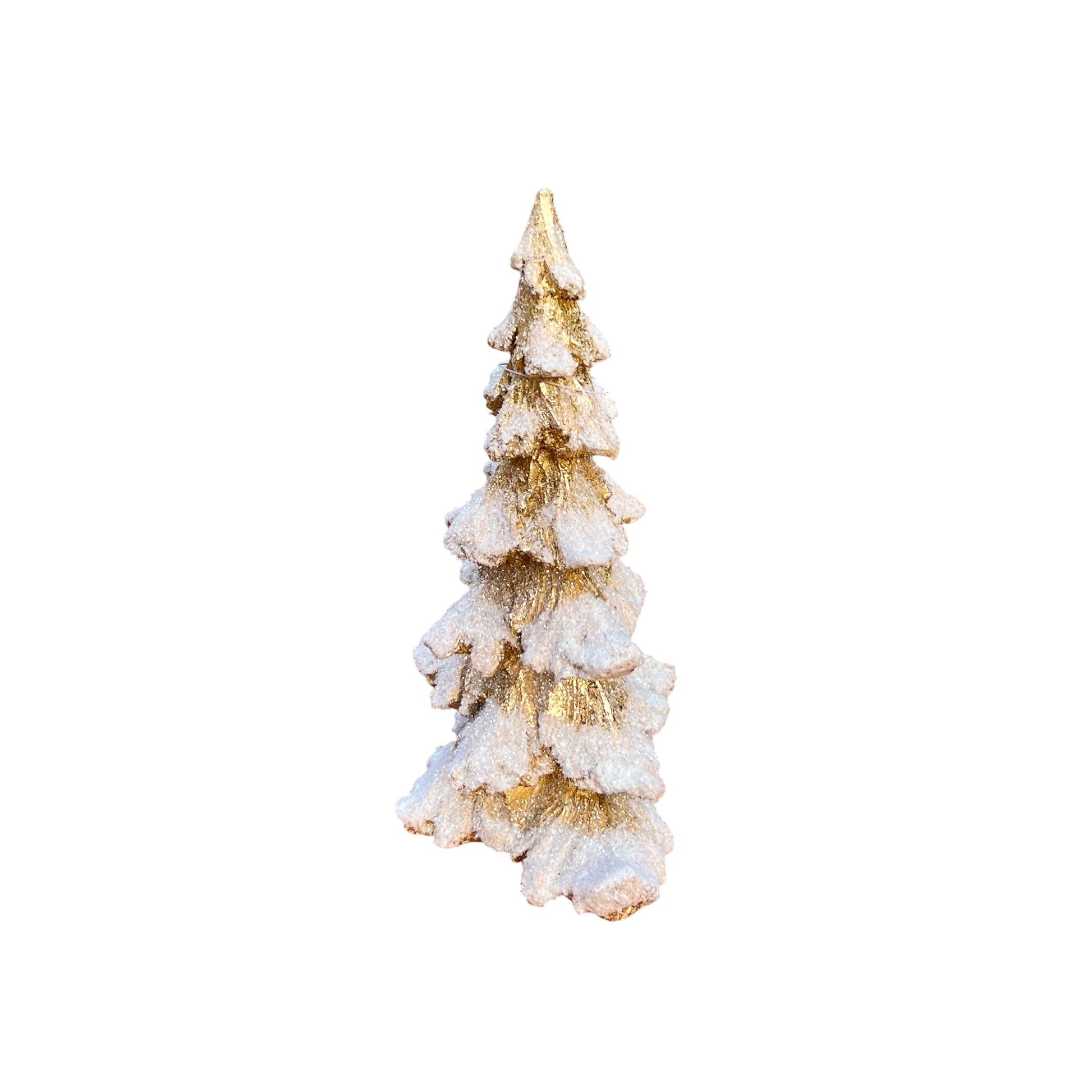 Glittery Gold & White Snow-Dusted Decorative Christmas Tree Figurine - 9" Tall
