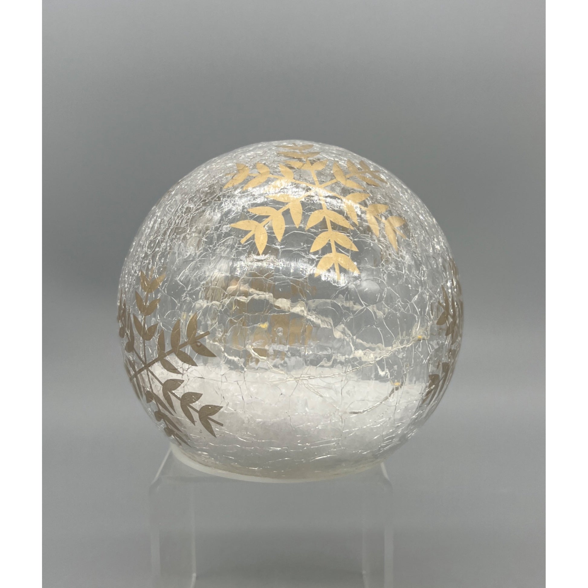This 4.5-inch crackle glass globe features hand-painted gold snowflakes, creating a sophisticated decor piece. Illuminated by built-in LED lights, its design adds a warm ambiance to any setting. Ideal for enhancing spaces with a touch of elegance and seasonal charm.