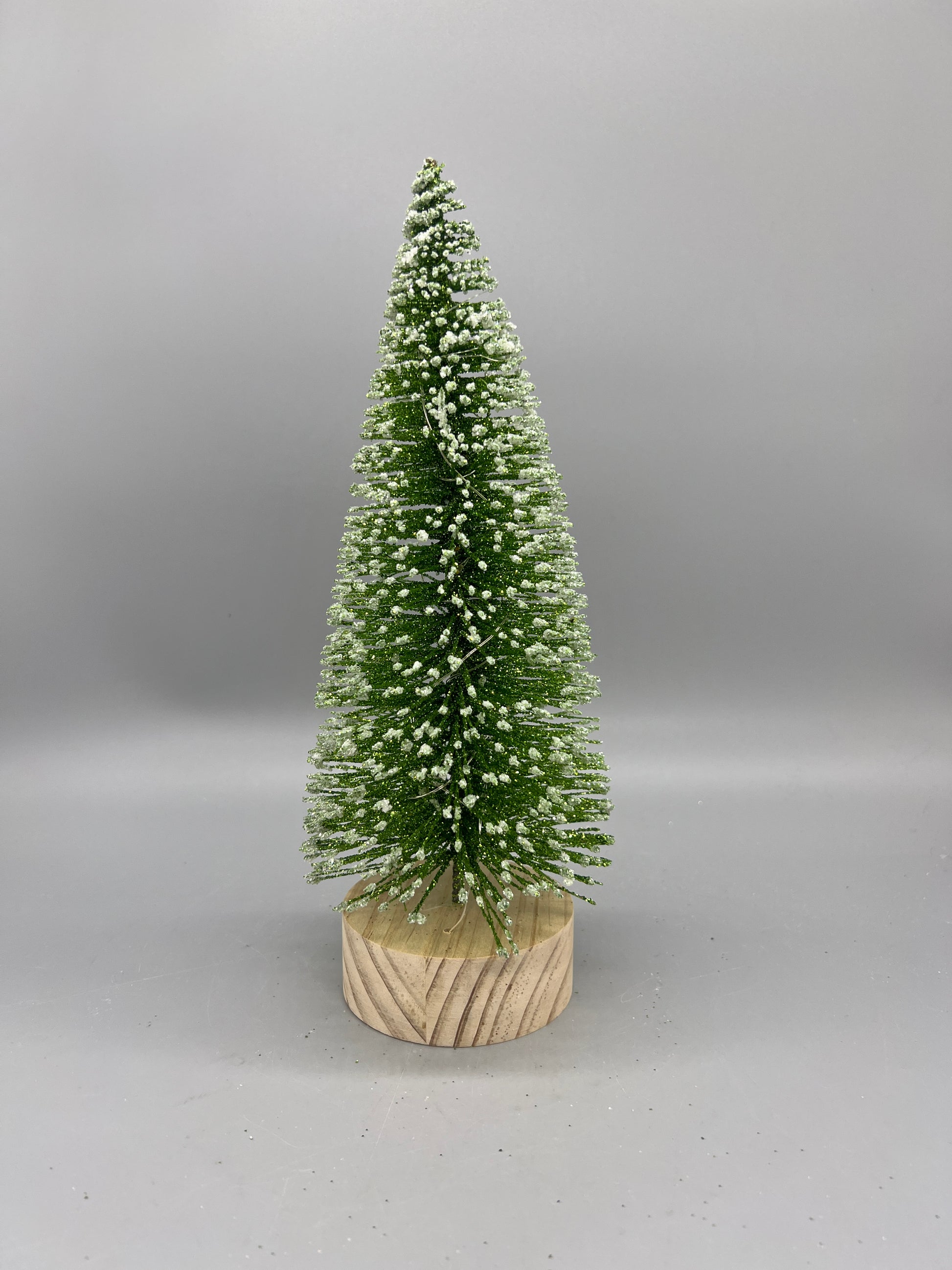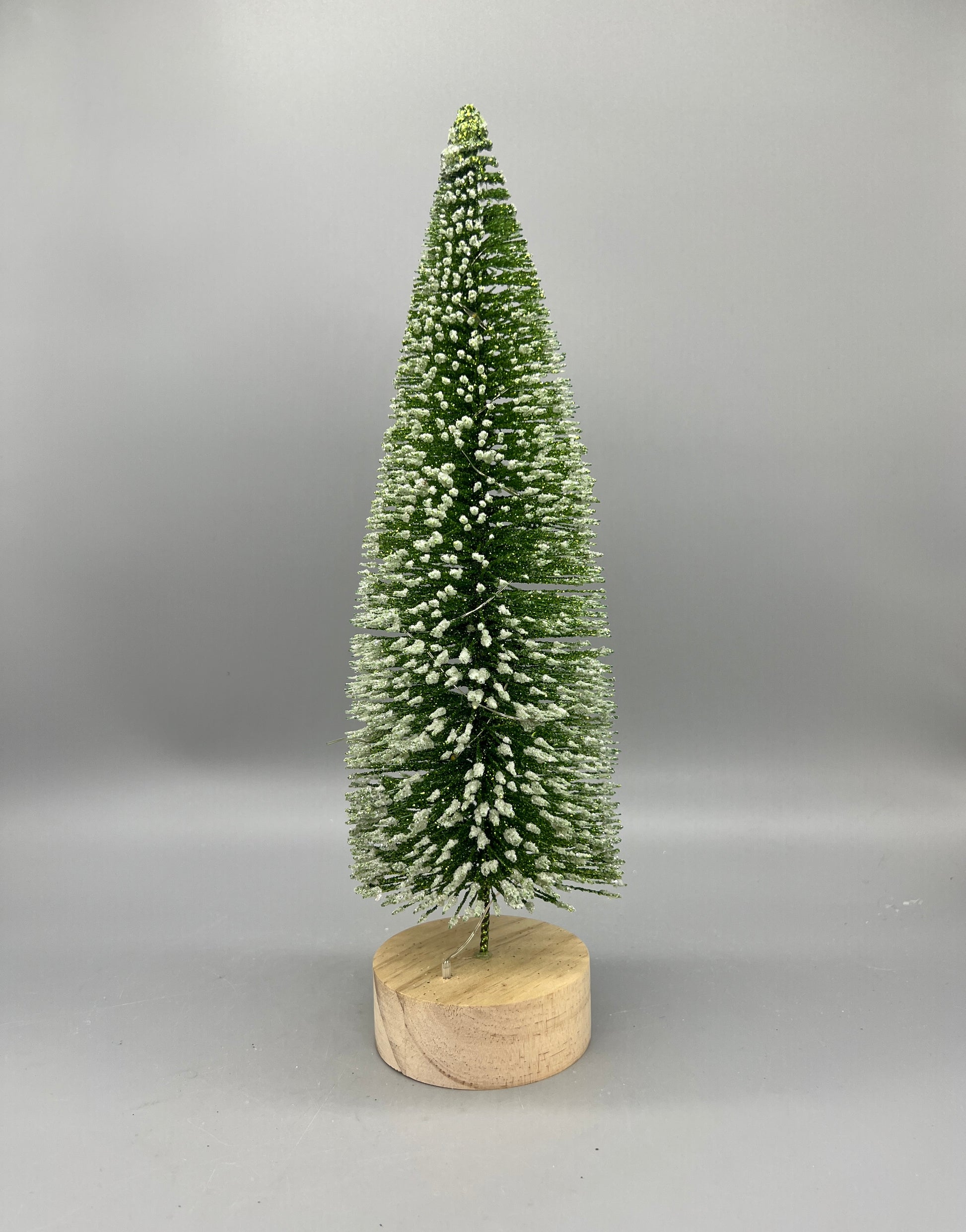 Light Up Bottle Brush Christmas Trees with Wood Base – Holiday Tabletop Décor