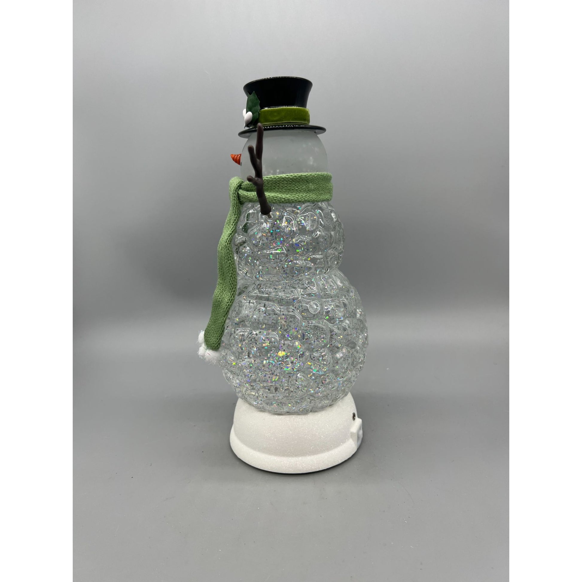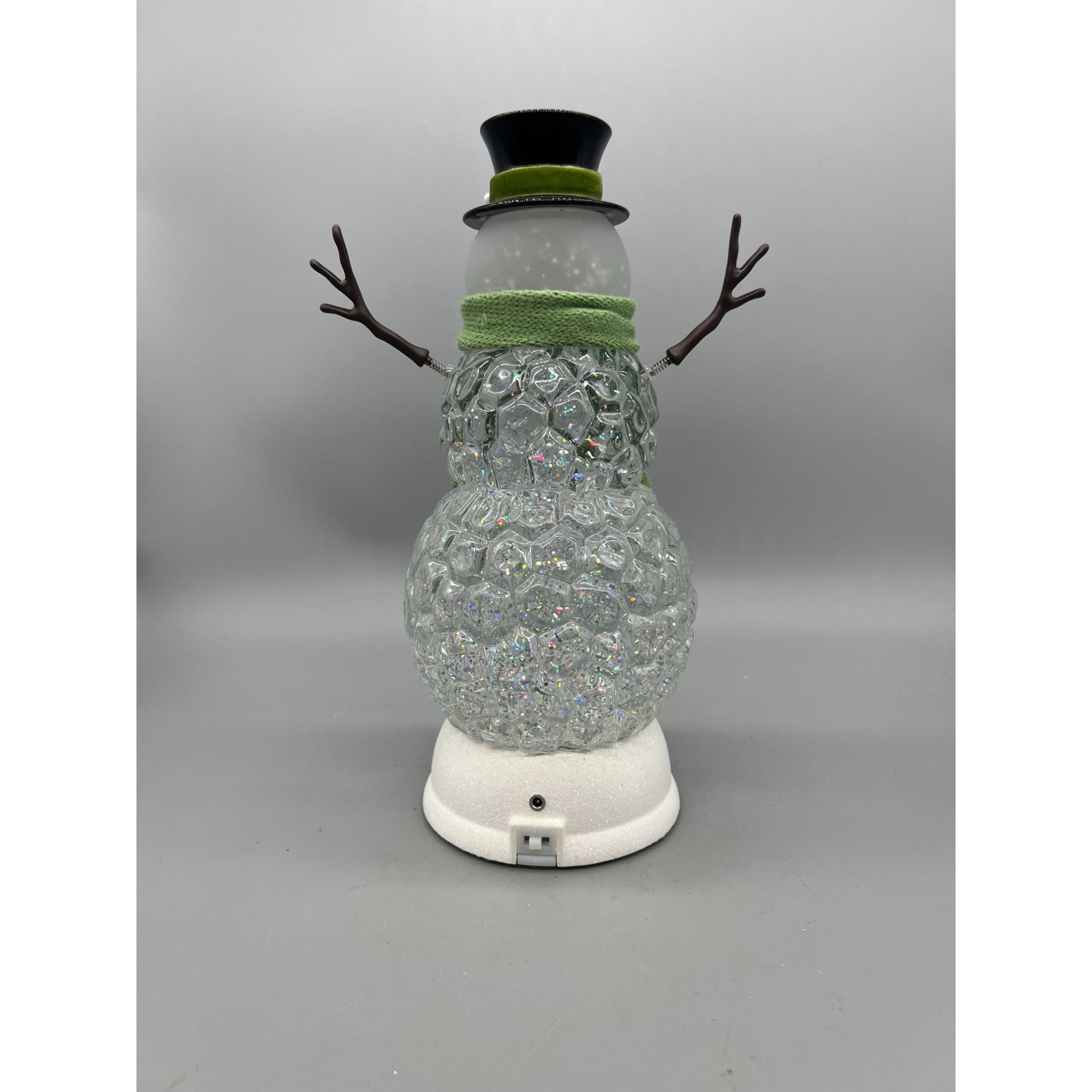 Light-Up Snowman Glitter Globe Decor With Green Scarf Top Hat & Timer Battery Or USB Powered 11" Tall