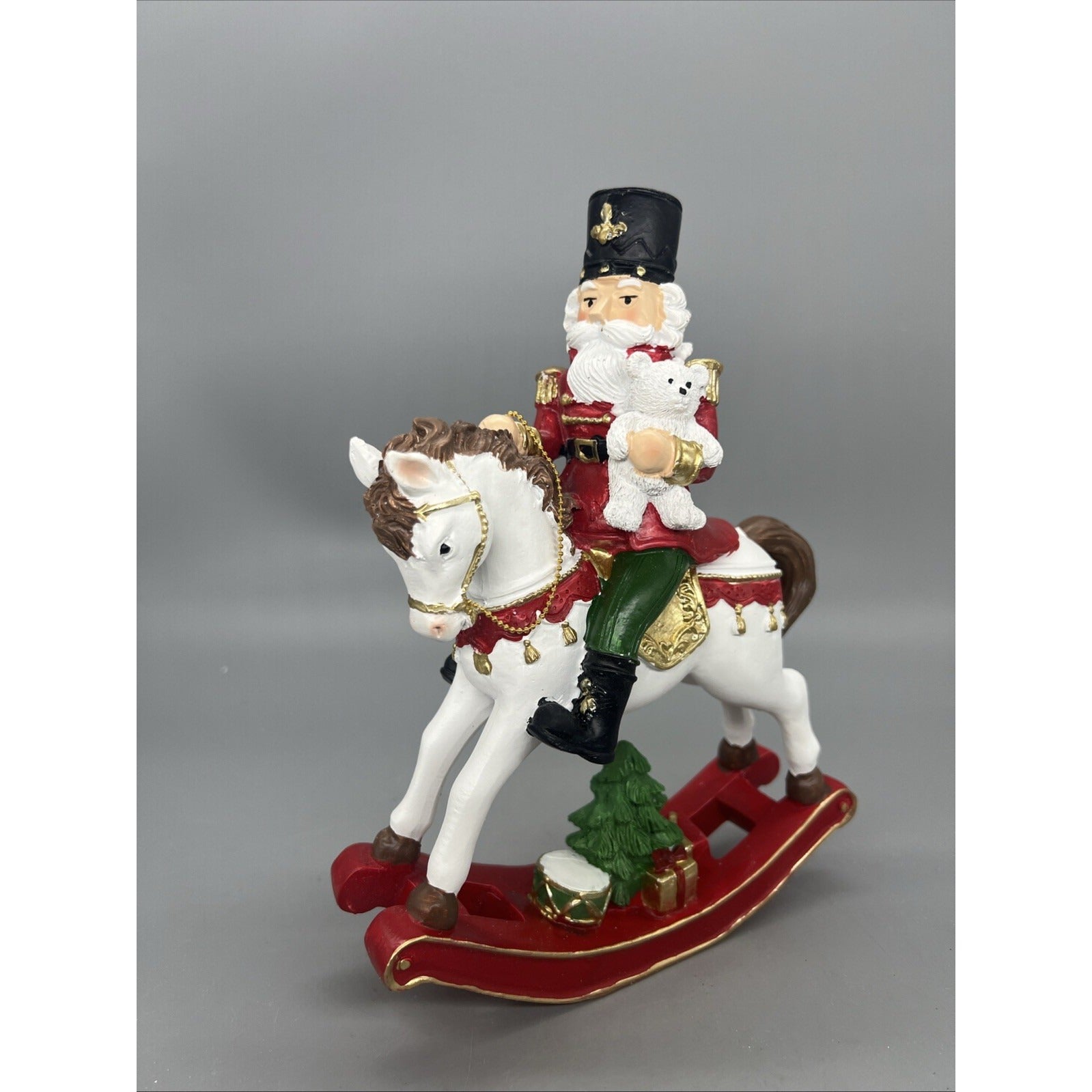 This delightful 9.25" Santa on a rocking horse captures the joy of the season in classic style. Dressed in his traditional red suit, Santa holds the reins while his intricately detailed horse adds a nostalgic touch. Perfect as a tabletop centerpiece, mantel accent, or collectible gift, this piece brings timeless holiday charm to any home décor