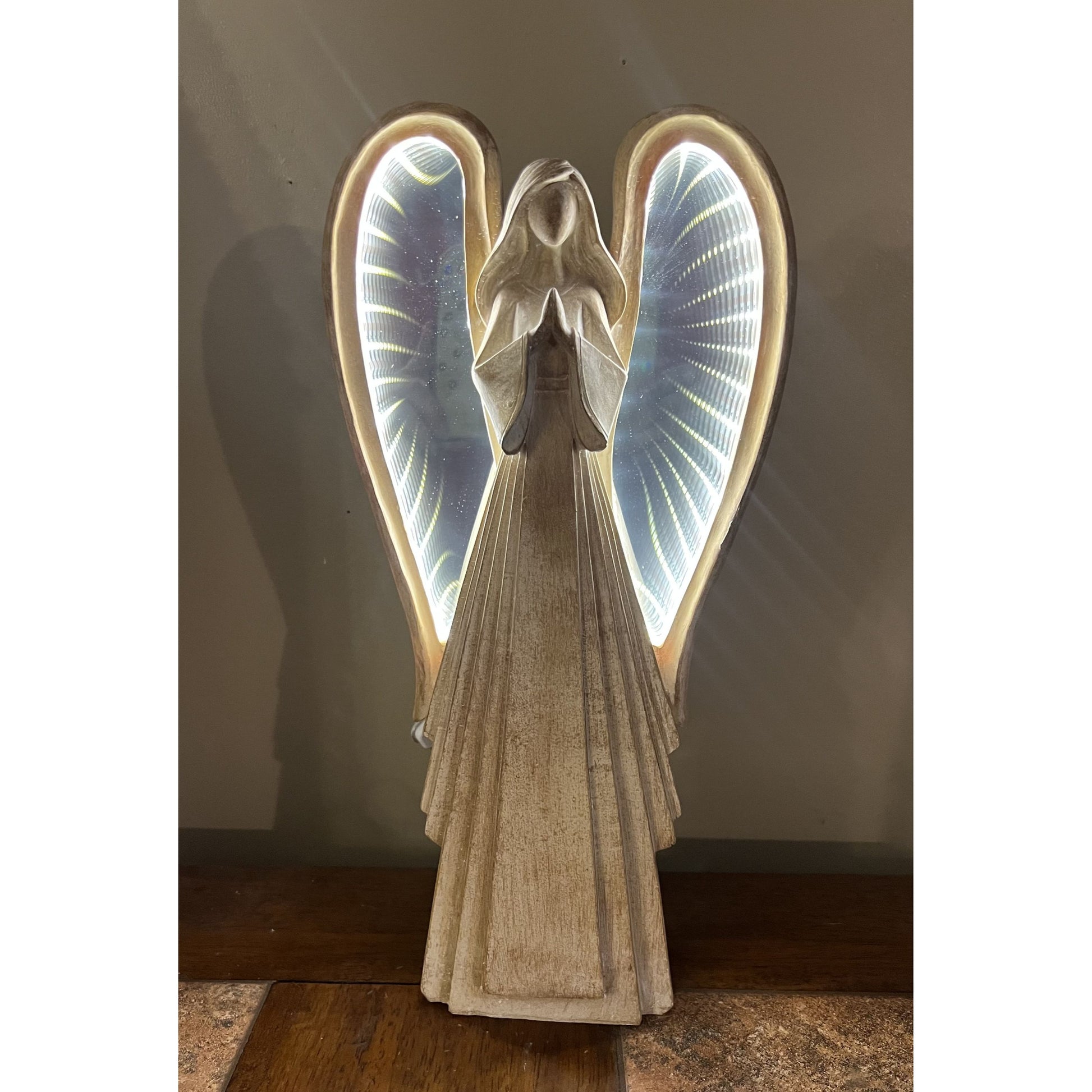 Praying Angel Figurine With LED Infinity Light Wings 15.5" H USB Cord Included Elegant Home Décor Accent