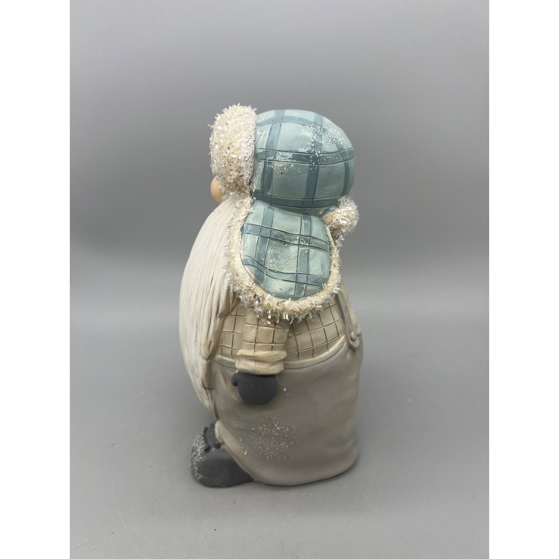 This hand-painted resin gnome figurine features intricate snowy details and a charming design, making it a sophisticated addition to holiday decor.
