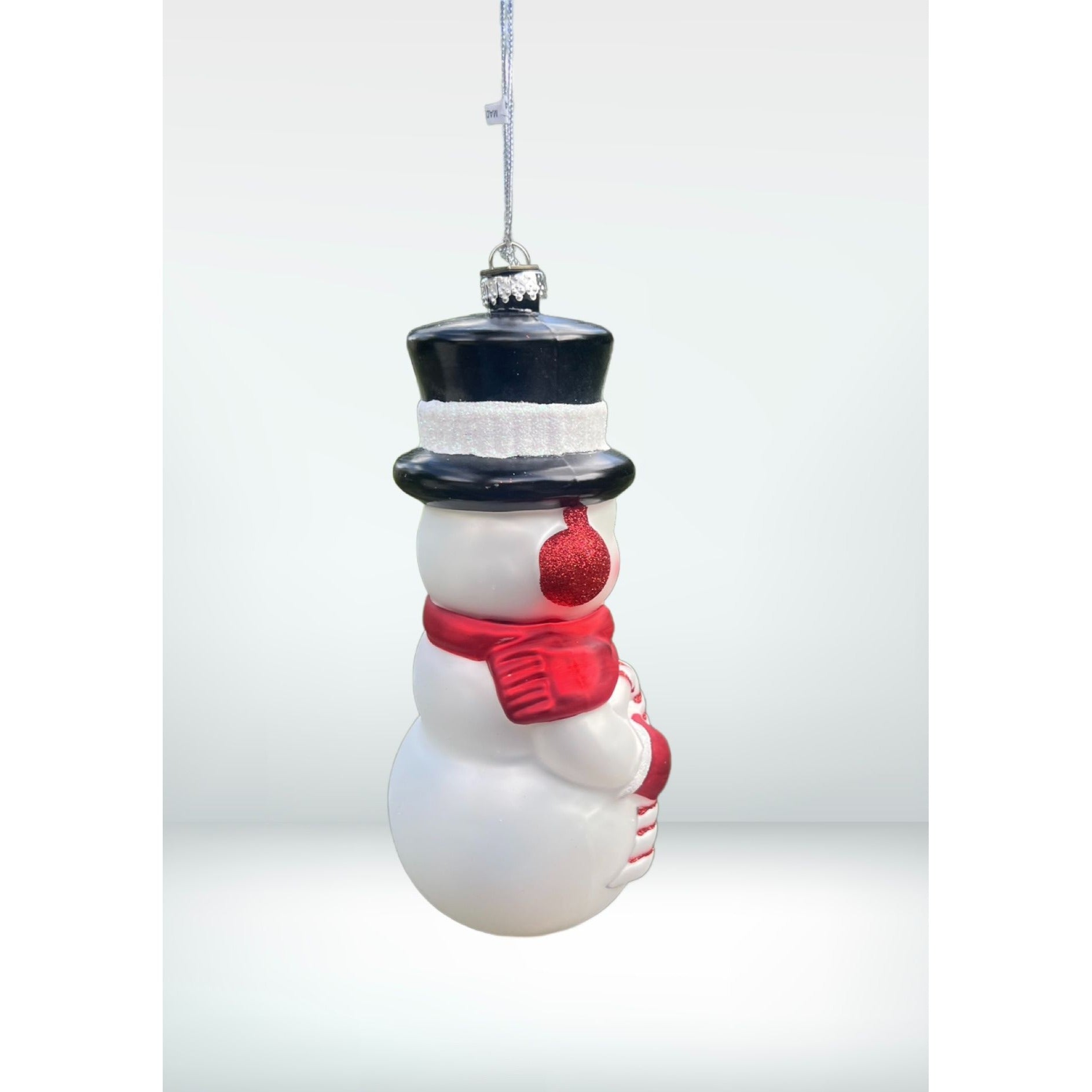 Vintage-Inspired 8" Glass Snowman Ornament With Red Scarf & Black Top Hat