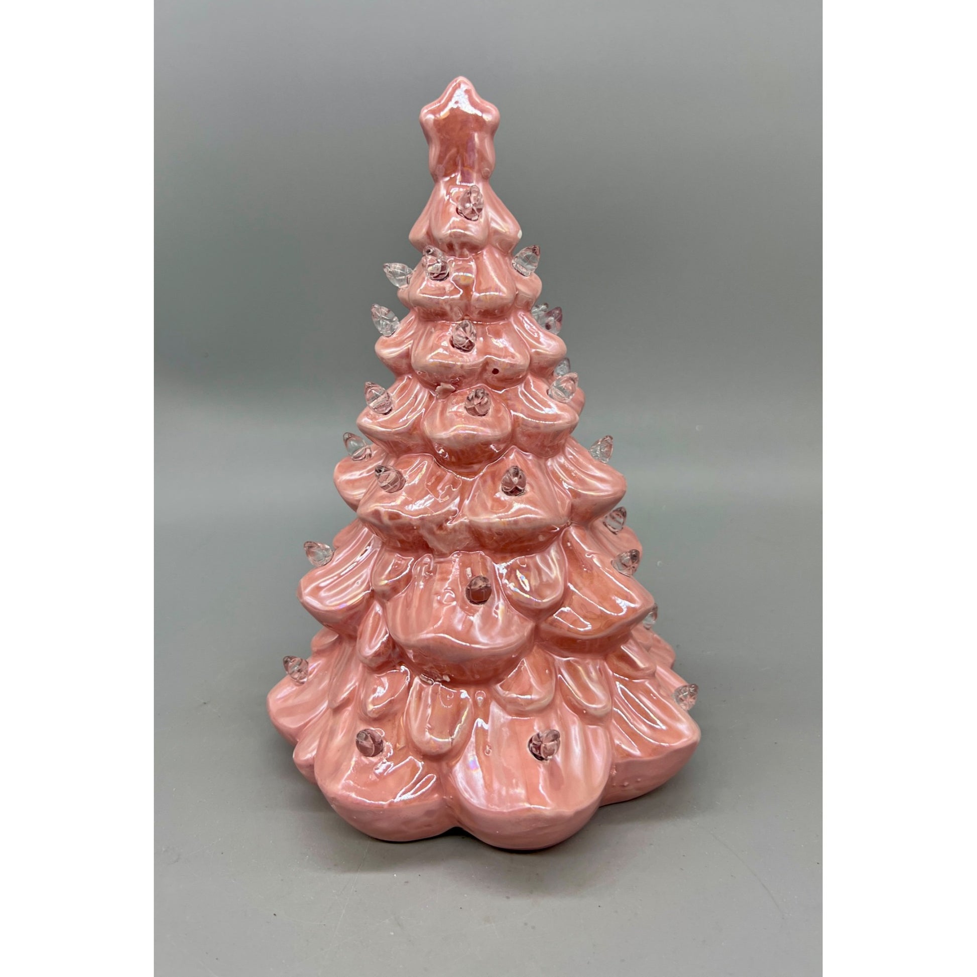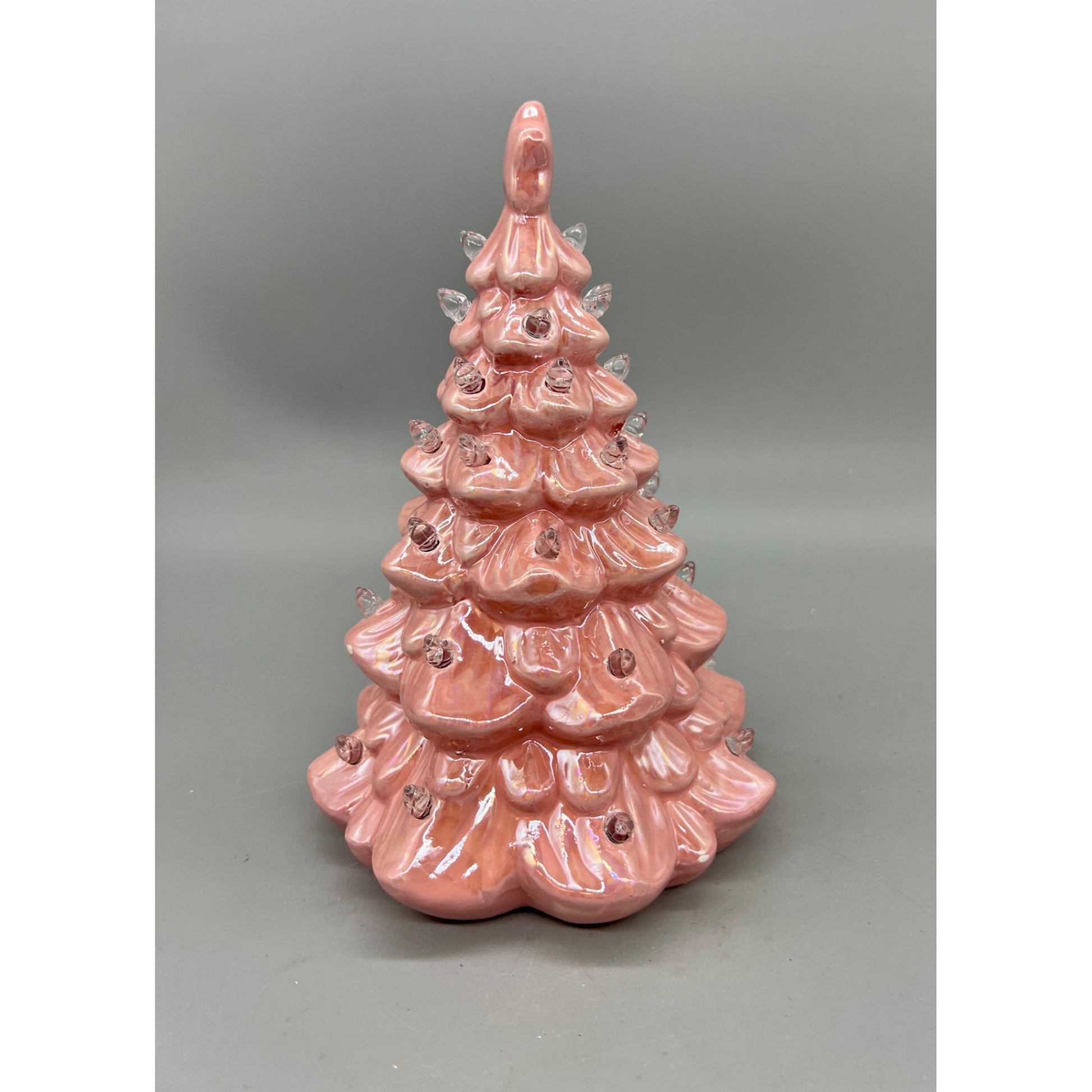 Vintage-Inspired 8" Pink Ceramic Christmas Tree With LED Lights & Clear Bulbs Battery Operated