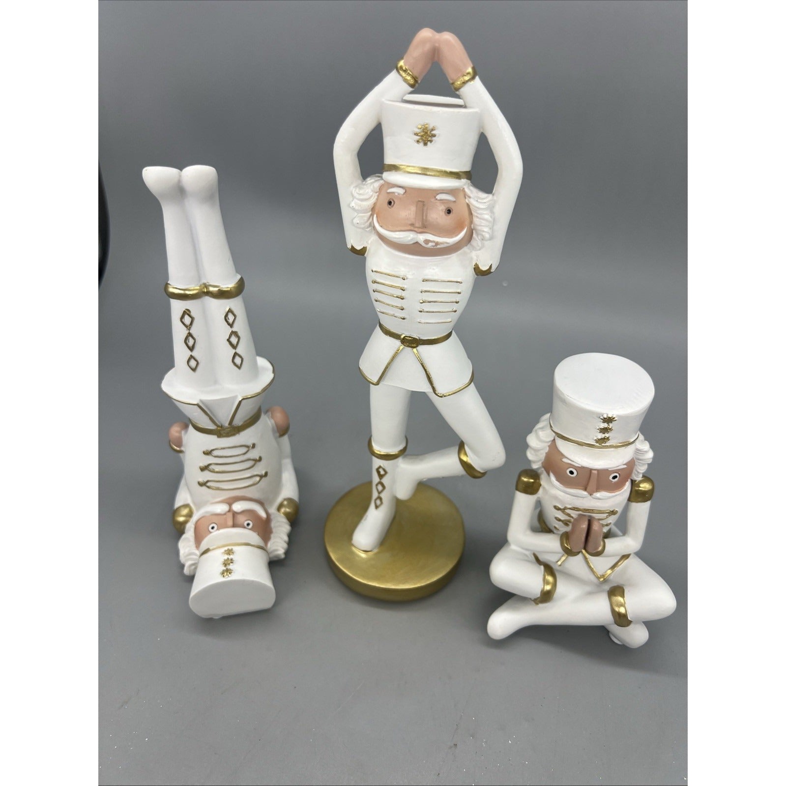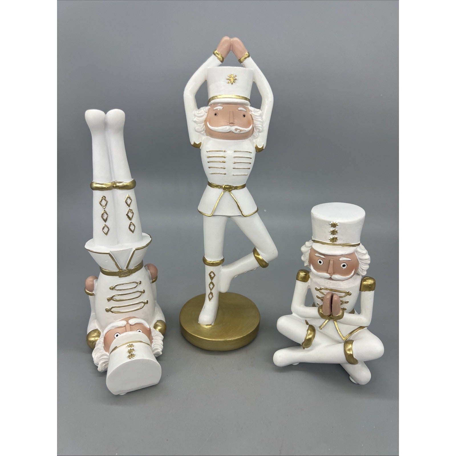 White And Gold Soldier Yoga (3 Asst) 5” 8” 10” Resin