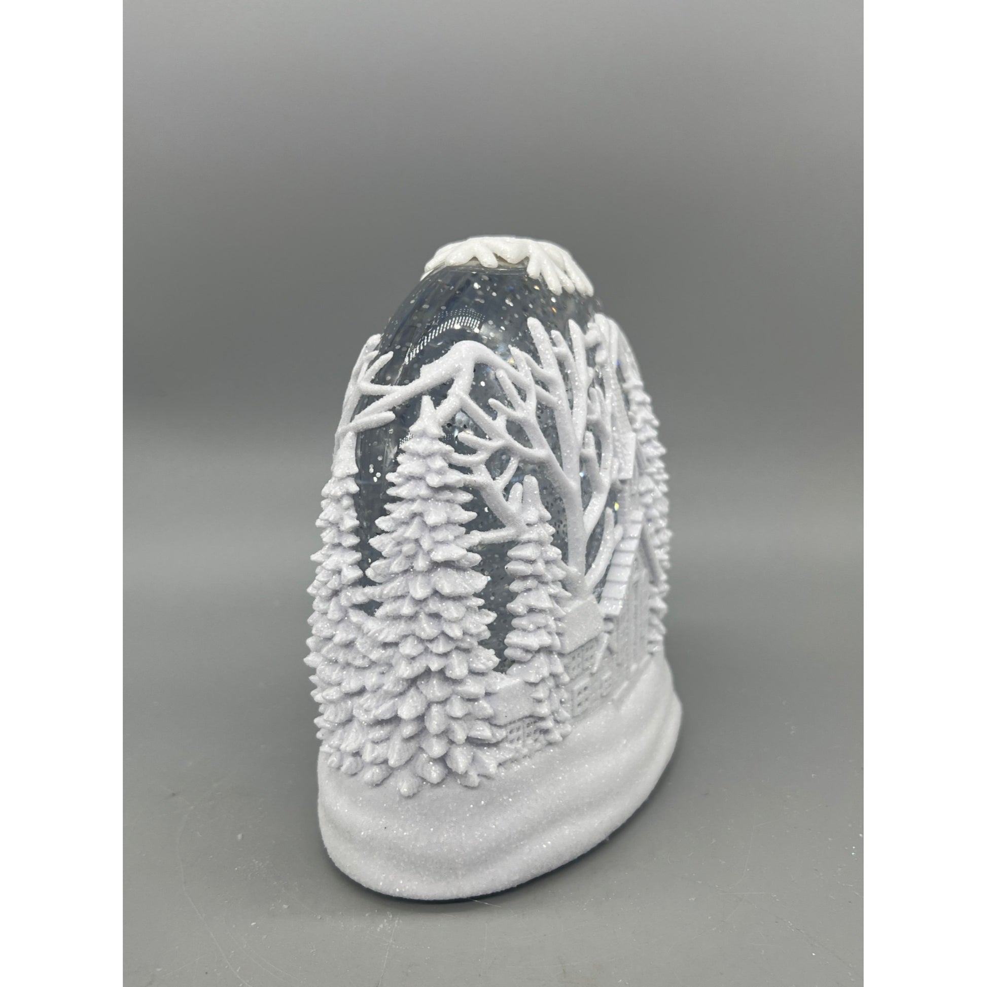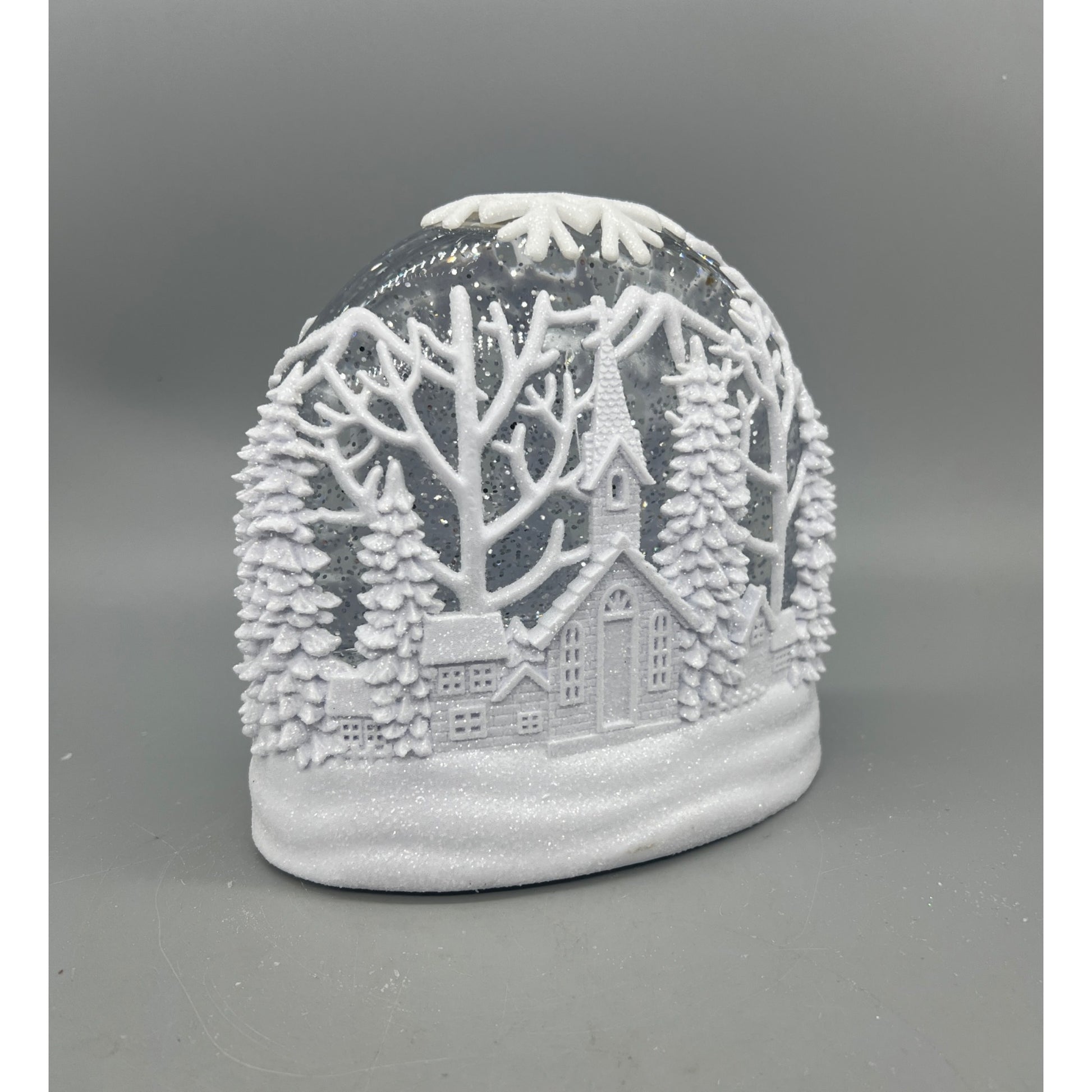 White LED Oval Acrylic Church Scene Water Spinning Snow Globe With Timer